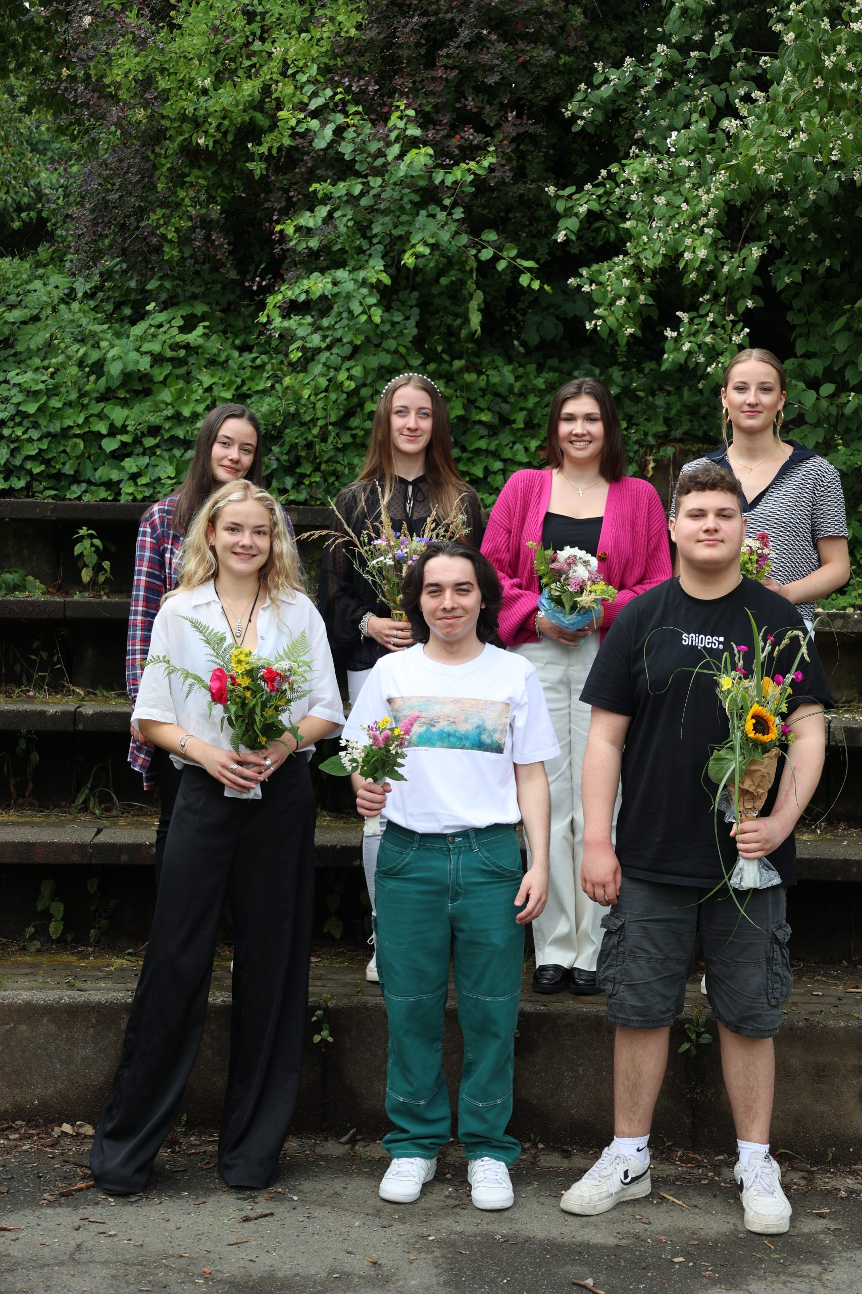 Unsere 13. Klasse war zwar klein, aber trotzdem erfolgreich. Alle 5 Abiturientinnen und 2 Abiturienten haben ihre Reifeprüfung mit Erfolg bestanden. Der Durchschnitt lag bei diesem Jahrgang bei 2,4. Wir gratulieren Marthe Risse, Merlin Beul, Antonia Oehm, Mia Schmidt, Pia Liebgott, Jette Schmidt und Felipe Kempf ganz herzlich zu ihren erfolgreichen Abschlüssen und wünschen ihnen für die Zukunft alles Gute und viel Erfolg auf dem weiteren Lebensweg.