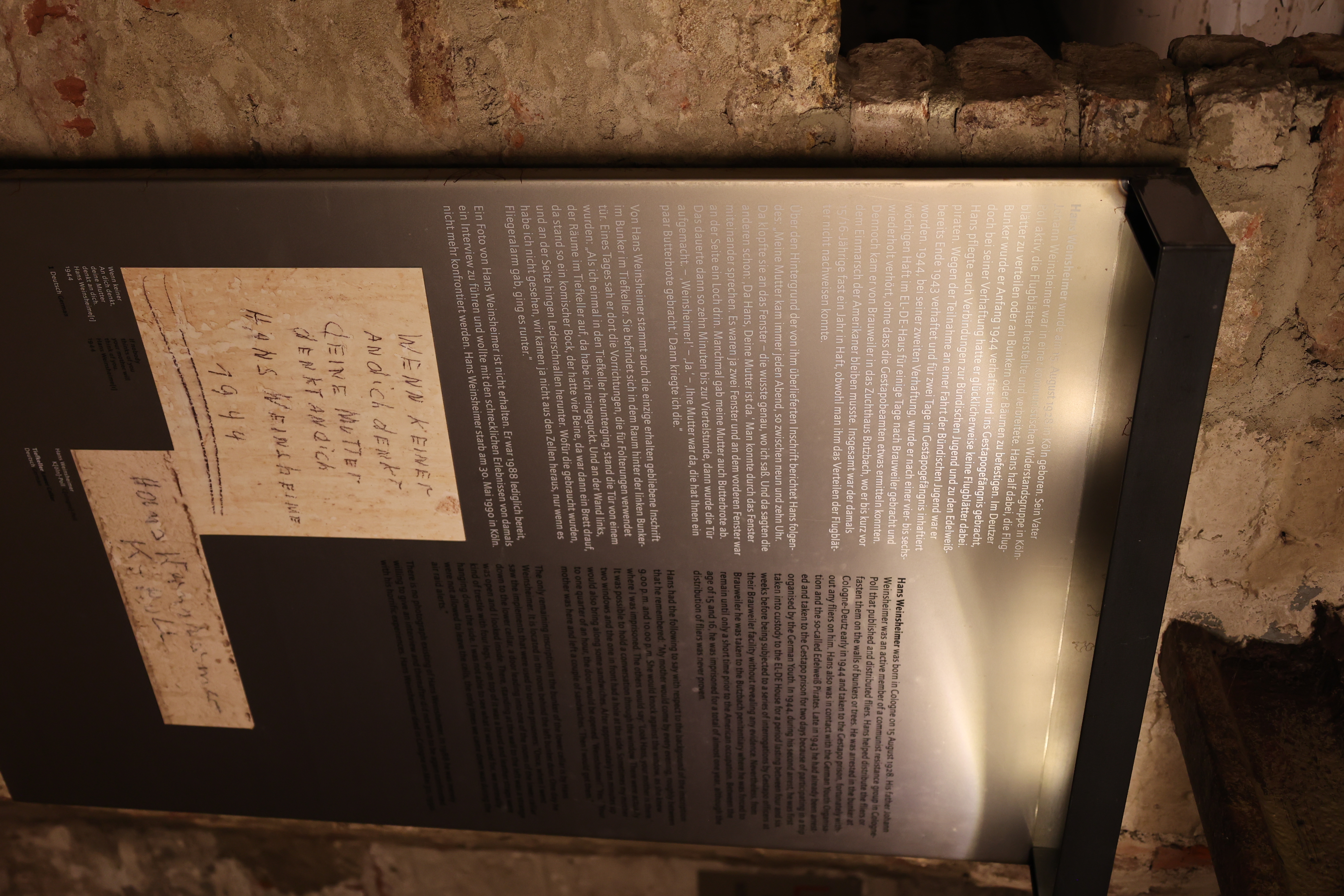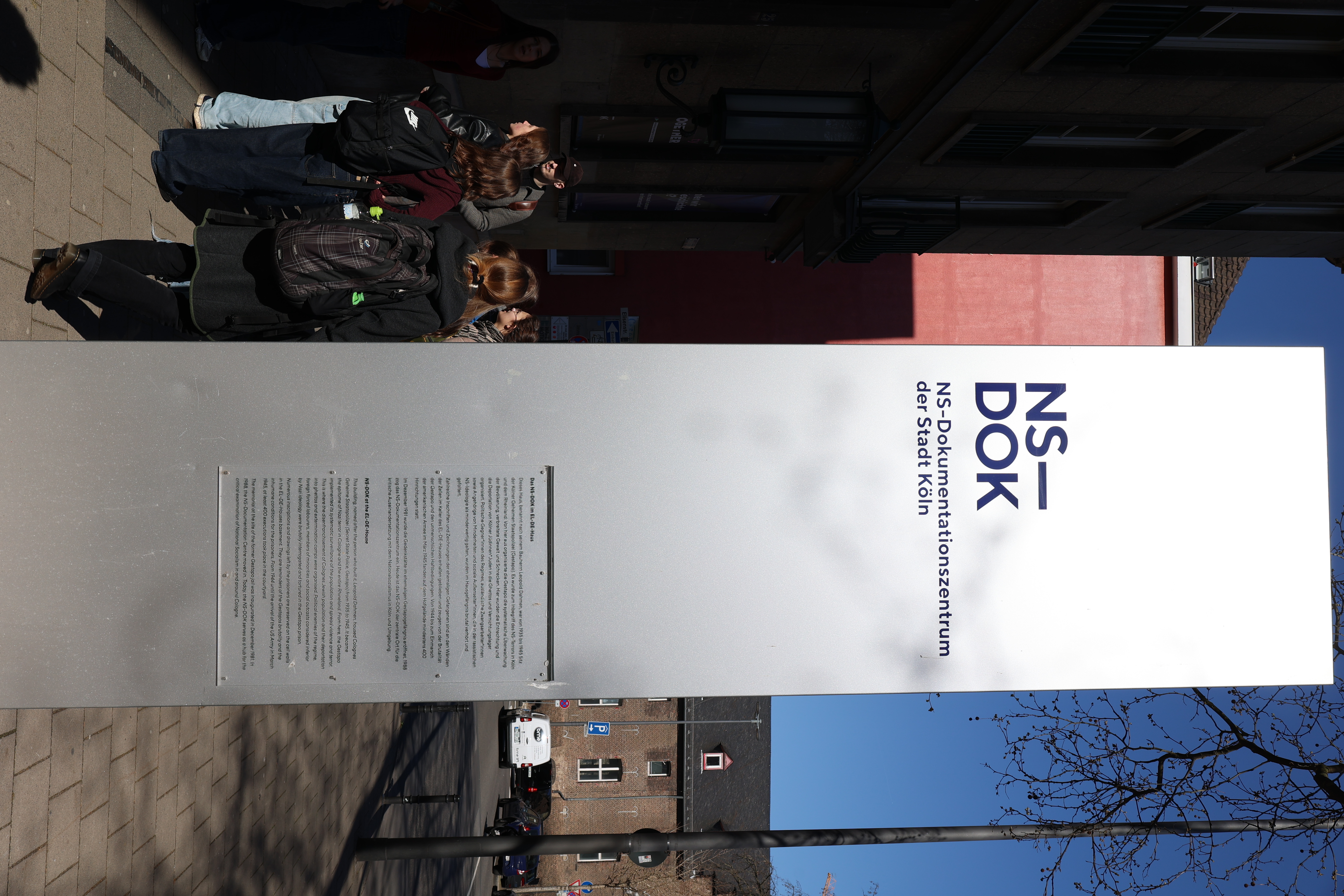 Dem Thema Nationalsozialismus näherte sich die Klasse 9 in diesem Schuljahr mit 3 Schritten: Nach dem Einstieg in der Geschichts- und Religionsepoche in der 1. Vollepoche stand jetzt die Lektüre des Buches Edelweißpiraten von Dirk Reinhard im Deutschunterricht an, dem sich zum Schuljahresende noch die Fahrt nach Weimar und das KZ Buchenwald anschließt. Der Tagesausflug am Mittwoch nach Köln mit 2 Guides vor Ort führte uns ein in die Geschichte Kölns zur Zeit der Nationalsozialisten und an die Orte der Jugendlichen, die sich die Edelweißpiraten nannten. Dabei erliefen wir uns die historischen Stätten und beendeten die Führung im früheren Untersuchungsgefängnis, wo wir die bedrückende Enge der Zellen nachvollziehen konnten und erschüttert wurden durch die Anschriebe der hier gefolterten, mißbrauchten und ermordeten Kinder und Jugendlichen. Danke an die beiden Guides, die sich die Zeit für uns genommen haben.