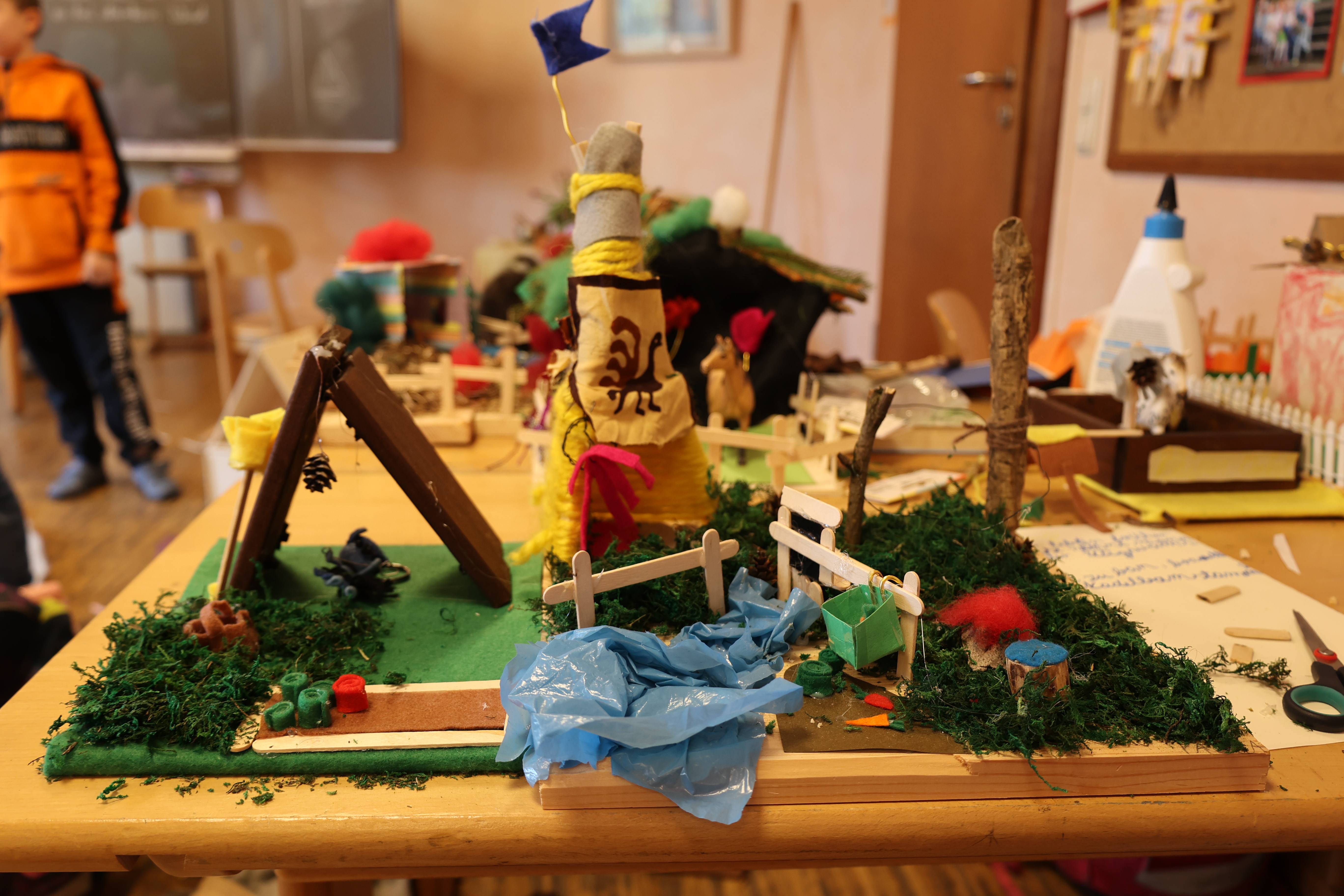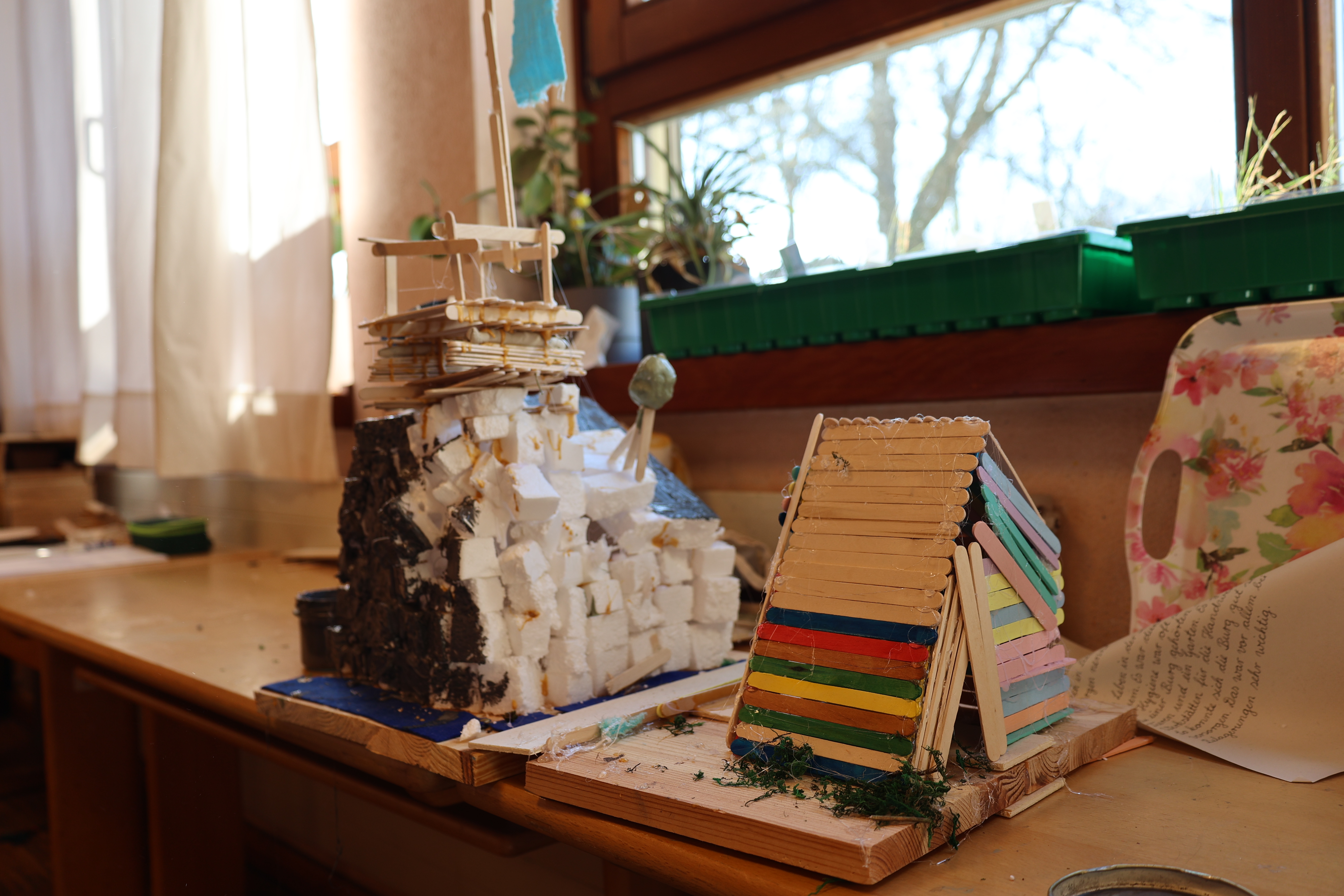 Die Igelklasse (Klasse 3) hat die Vollepoche für ihre Hausbauepoche genutzt. Wer in den vergangenen 3 Wochen am Klassenraum vorbei kam, konnte allein schon durch die Geräusche und Gerüche wahrnehmen, wie hier die verschiedensten Unterkünfte gestaltet wurden. Am Dienstag, 24. März werden die Exponate ausgestellt zwischen 8.45 und 9.30 Uhr auf der Empore.