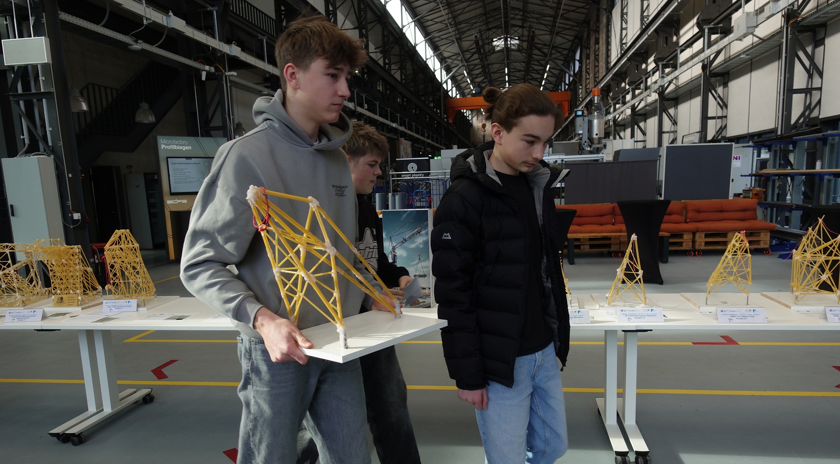 Wichtig war uns, eine hohe Stabilität im Verhältnis zum Eigengewicht zu erreichen: deshalb die dreieckige Fachwerkkonstruktion. Beim ersten Test haben wir mit 285g Nudeln sage und schreibe 20 kg Tragkraft erreicht. Daraufhin haben wir zuversichtlich unser zweites Modell gebaut, das dann leider beim Zwischentest verunglückt ist. Also auf ein Neues! Beim dritten Kran gingen wir mit all unseren Vorerfahrungen dann sehr zielgerichtet vor: Noch leichter, aber ohne Stabilität zu verlieren!